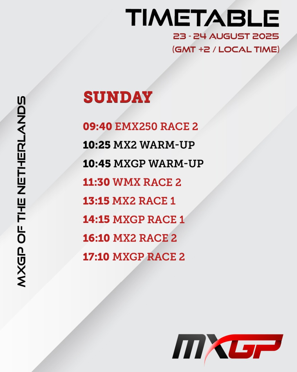 Sedmnáctý podnik FIM Mistrovství světa v motokrosu 2025 dnes vrcholí v Arnhemu jako MXGP Nizozemska.