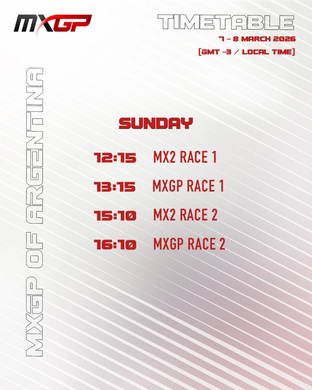 K němu se v týmu Honda HRC Petronas do GP vrací Tom Vialle , který si odbyde svůj debut v MXGP. Dále postupují Tomův kolega, bývalý mistr světa MX2, Kay de Wolf z Nestaan Husqvarna Factory Racing a Andrea Adamo z Red Bull KTM Factory Racing! S loňským argentinským vítězem MXGP Maxime Renauxem, který se vrací do Monster Energy Yamaha Factory MXGP, a Paulsem Jonassem, dvojnásobným vítězem MX2 z Argentiny, zpět do Kawasaki Racing Team MXGP, to na začátku sezóny představuje úžasných osm mistrů světa! A to ani nepočítáme argentinského vítěze z roku 2023 Rubena Fernandeze, ani trio MXGP z Ducati Factory Racing ve složení Calvin Vlaanderen, Andrea Bonacorsi a Jeremy Seewer! Kdo ví, co se stane, až se všichni společně vydají na trať?!